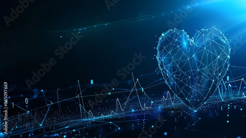 Futuristic medical network of heart anatomy and cardiological structure, innovative medicine and technology, low poly wireframe