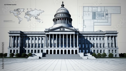 3d wireframe render of a government buil3ding architect background