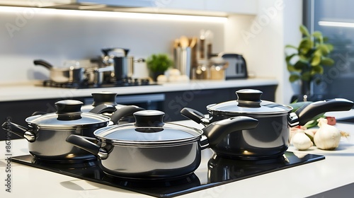 Premium cookware set including pots pans with nonstick surfaces beautifully arranged in a modern kitchen ready for gourmet cooking