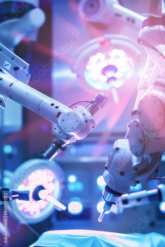 Cutting-Edge AI Technology Assisting Surgeons in Advanced Robotic Surgery with Pastel Background and Clear Light in High-Tech Operating Room