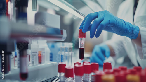 Laboratory technician analyzes a blood sample to detect doping substances in a modern medical laboratory.