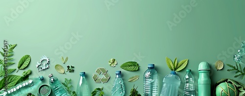 Peaceful Recycling Theme Green Background with Recycled Materials and Nature Elements Repurposed Plastic Decor