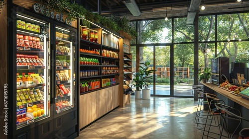 supermarket and shelves with fresh food and vegetable background