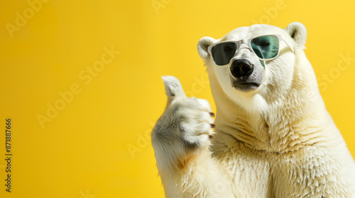 polar bear wearing sunglasses giving the thumbs up
