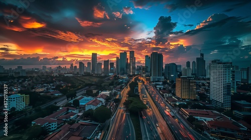 Atardecer en el distrito financiero de una ciudad moderna