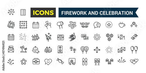 Firework and Celebration icons set. Outline icons pack. Editable vector line icon set and illustration for web and UI application.