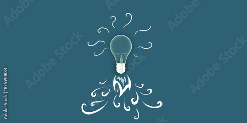An illustrated light bulb with decorative swirls on a teal background, symbolizing creative inspiration or idea. 3D Rendering