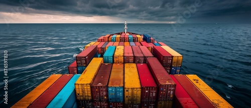 large containership with colored containers freight services logisitics concept. Generative ai