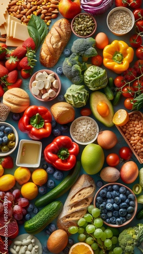 Set of Main food groups ,macronutrients, Carbohydrates, fats, proteins and fructose,5 main food groups Cartoon Hand Painted,Nutrient complex diet of organic natural,3d Vector illustration.