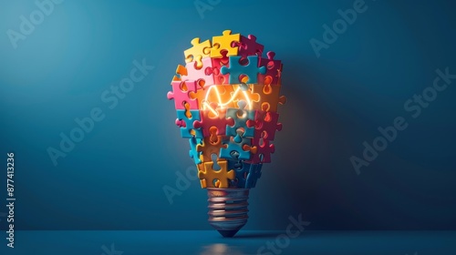 creative problem-solving, creative banner illustration showing puzzle pieces perfectly fitting together to form a lightbulb shape unique idea expressed visually