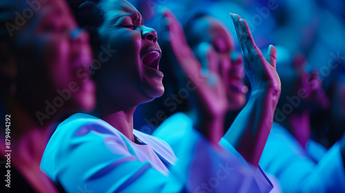 Church congregation Christian gospel singers raising praise
