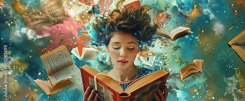 Art style collage reflects the concept of reading books, symboli