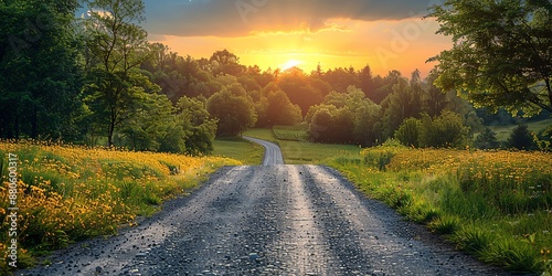 a rural road, highlighting the natural surroundings with ample copy space for real estate presentations, Illustrations, paintings, watercolors, copy space for text, - Gener