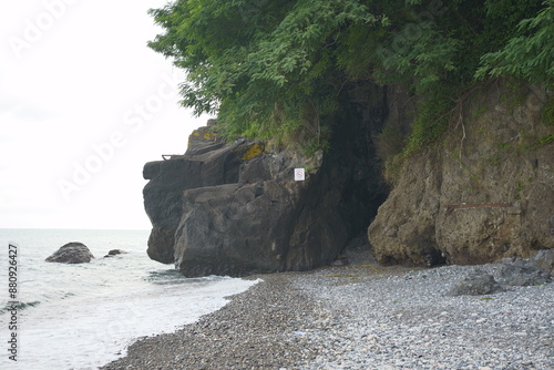 Lato 2024 w Gruzji. Widok na plażę w Batumi. Przybrzeżna pieczara.