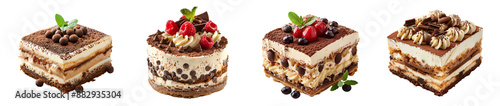 Assorted tiramisu desserts with berries and chocolate indulgent treat transparent background