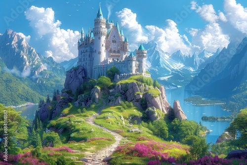 Enchanting Castle on Hilltop - Fantasy Landscape Illustration