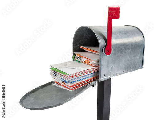 Voller Briefkasten mit Briefen isoliert auf weißen Hintergrund, Freisteller