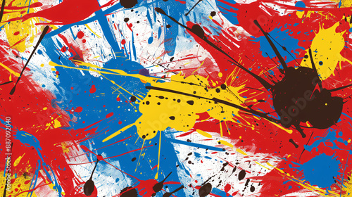 Vibrant backdrop with paint splashes on canvas, forming an abstract expressionist artwork