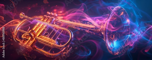 Abstract Trumpet with Glowing Light, Musical Concept