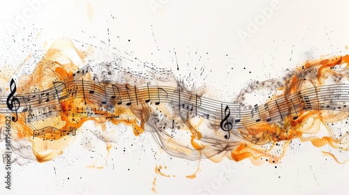 Abstract Music Background with Watercolor Splashes.