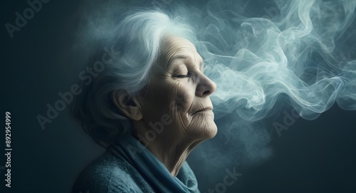 Illustration senior mature female, how age eats our mind concept of Alzheimer's mental disorder illness.