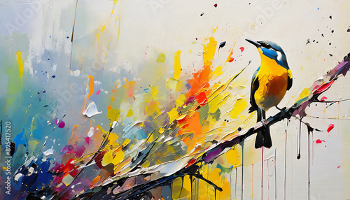 bird on a branch sing like a bird oil painting