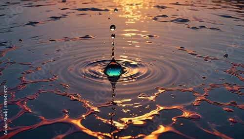 Gota de agua rompiendo la tensión superficial de masa de agua con mas volumen
