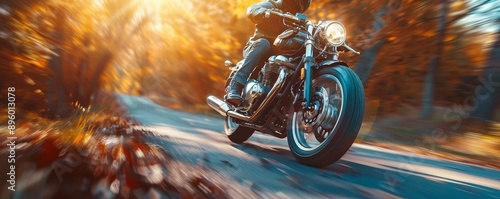 A vintage motorcycle roaring down a country road, its chrome gleaming in the sunlight.