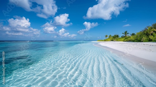 beautiful beach with crystal-clear waters and pristine sand, free of any plastic bags or waste, emphasizing a plastic-free shoreline