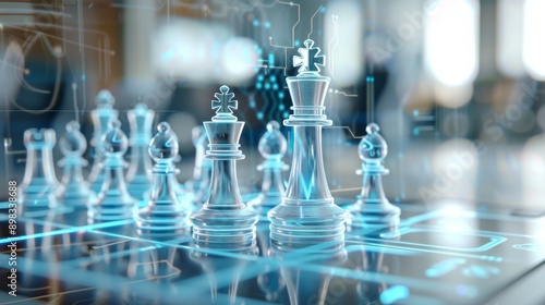 Futuristic 3D Holographic Chess Game in High Tech Conference Room