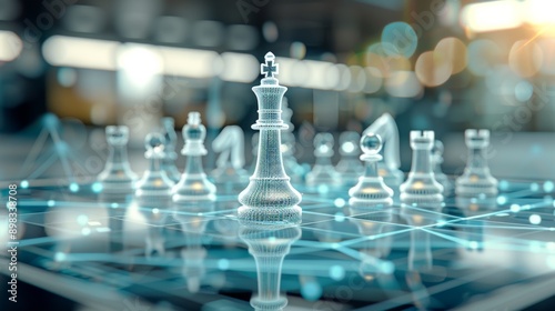 Futuristic Holographic Chessboard Representing Business Sectors on High Tech Background