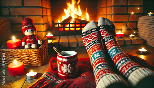 feu de cheminée, esprit de Noël, vacances d'hiver cosy