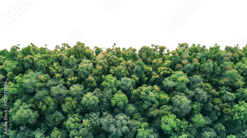 una foresta lussureggiante con una varietà di alberi e piante verdi. La vegetazione è fitta e rigogliosa, creando un ambiente naturale e sereno. Su sfondo trasparente, cut-out.