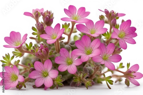 Purple mountain saxifrage flowers white background, ai Generated