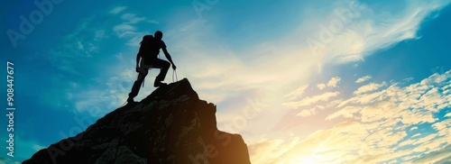 Man he heights of ambition and excellence on the mountain. The spirit of ambition and the journey toward achieving greatness and personal growth.