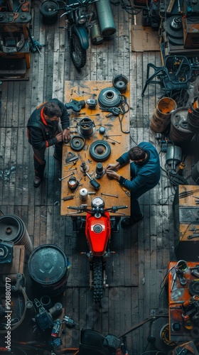 Motorcycle Repair Shop Overhead View.