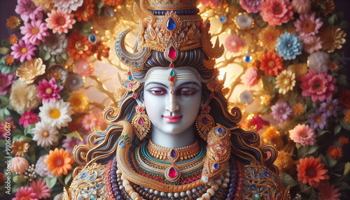 beautiful colorful hindu god lord shiva or sankar,mahadev with flower decoration