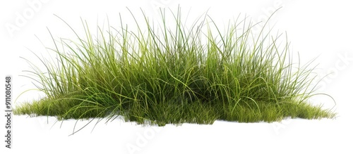 Detailed blades and natural texture of a clump of green tall grass stand out on a white background with clipping paths creating a beautiful copy space image