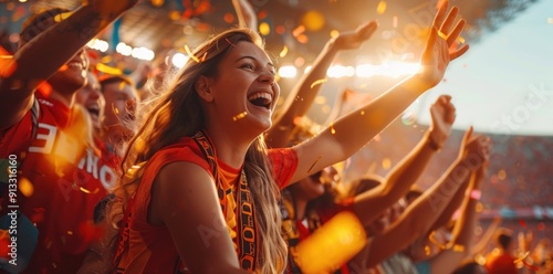 Match day joy, fans enjoying cheering game football team, capturing excitement and unity as supporters rally together, celebrating every goal, moment of match with passion, energy.