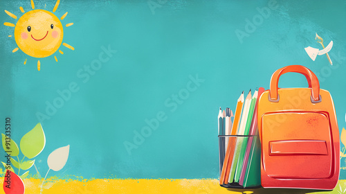 fondo escolar representando el regreso a clases con una mochila y colores fondo divertido con espacio para copiar concepto escolar aprendizaje inicio de curso