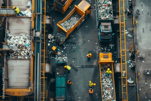 Modern Recycling Plant with Workers and Machines Efficiently Sorting Waste for Advanced Waste Management