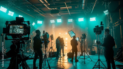 Film crew shooting a movie scene on set with