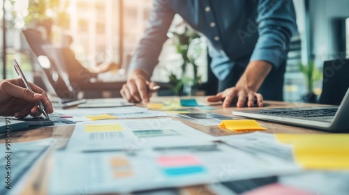 Entrepreneur sharing detailed business workflow insights with colleagues for operational excellence