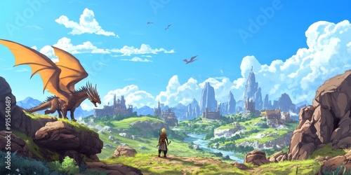 Epic Adventure Realm: Anime-Style Dragon and Hero in a Quest for Glory, Perfect for Game Art, Storybook Illustrations, and Immersive Storytelling in 4K Wallpaper Video