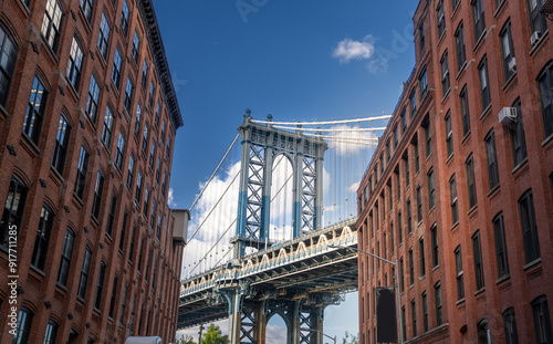 Manhattan Bridge between Manhattan and Brooklyn during sunset, NewYork city, New York, United States of America, USA