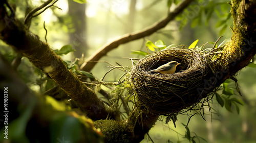 Closeup of a bird s nest nestled in the branches, showcasing the forest as a nurturing habitat