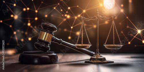 Law and justice concept with judge gavel and scale on wooden background