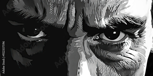 The mug shot, captured in black and white, stares back at the world with a defiant glare