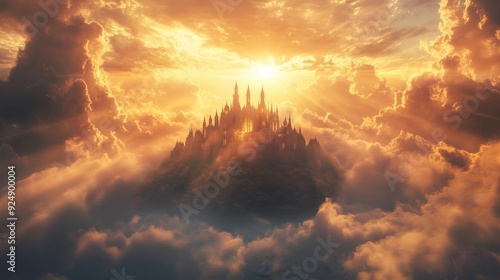 Abstract kingdom of heaven. Palace in the sky.