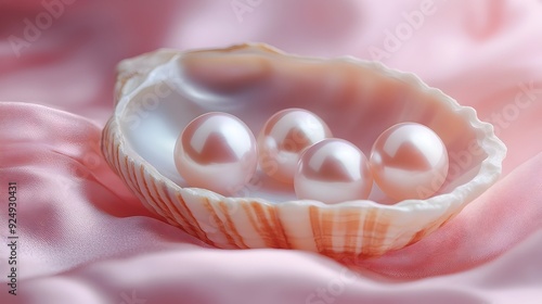 Radiant Pearl Seashell Closeup in Soft Pink Background